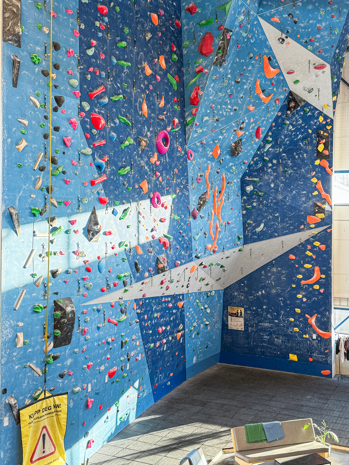 Klatring er ein perfekt aktivitet for born i alle aldrar! Vi har eit eige barnerom med lavare buldreveggar med bulder skrudd spesielt for born, med klatretak tilpasset barnehender og kort avstand mellom taka. Ved sidan av barnerommet er autobelayveggen vår, som er 6 m høg og også har ruter som egnar seg for born. Det krevst ikkje forkunnskap for bruk av autobaly, men henvend deg i resepsjonen dersom du ikkje har brukt dette før og treng opplæring. Born under 13 år må alltid vere under oppsyn av vaksen.
